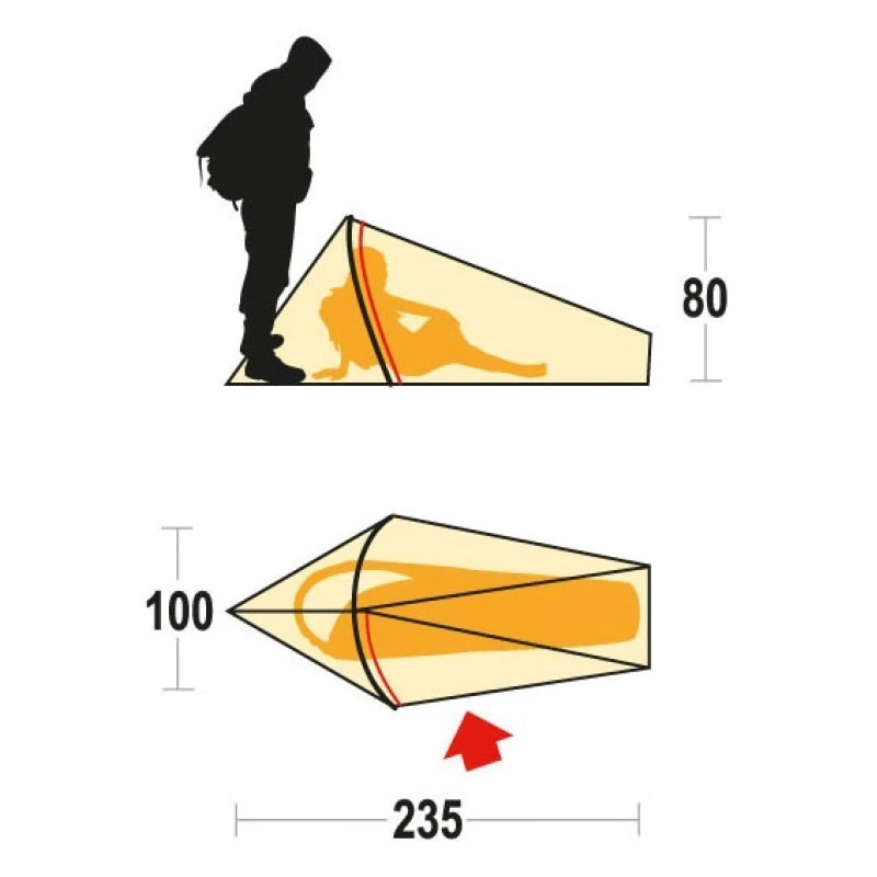 Une tente de bivouac sous la barre du kilogramme, c’est bien : poids de 990 g. Une tente réellement compacte, c’est encore mieux : 14 x 30 cm (volume de rangement). La Sintesi 1 de Ferrino est donc une tente de randonnée à ne pas prendre à la légère. En ce qui concerne l’espace de couchage, on a juste ce qu’il faut sans superflu : une longueur de 235 cm, une largeur de 100 cm et une hauteur de 80 cm. La chambre possède une base bien imperméable en polyester et un toit bien imperméable en polyester Ripstop 50D. L’entrée est sur le côté et il y a une poche de rangement à l’intérieur de la chambre pour les objets à garder près de soi pendant la nuit. Il y a également un crochet pratique au plafond pour fixer une lampe frontale (par exemple). Inclus : piquets ultra légers (Hexagon), zone d’aération à l’avant et moustiquaire.