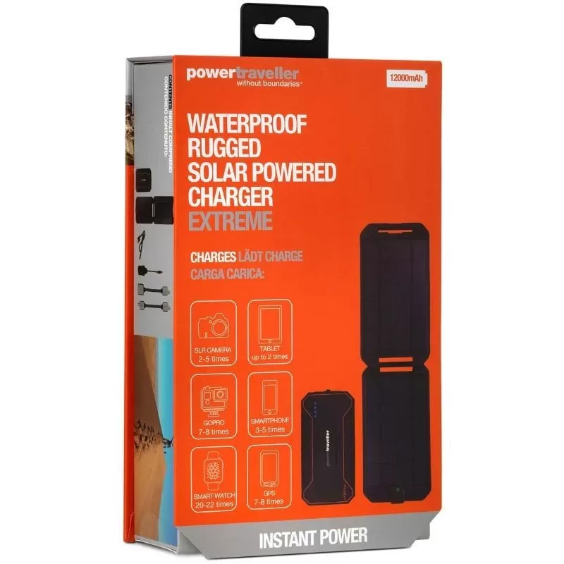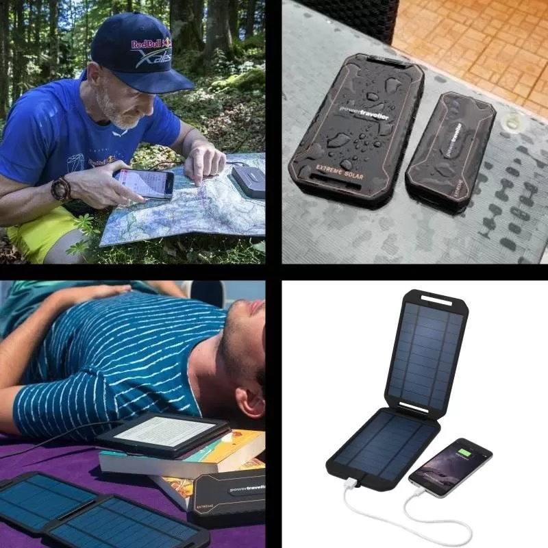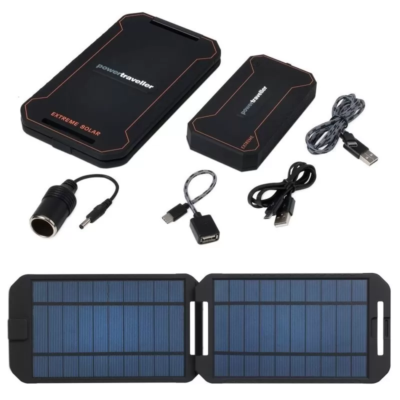 Une solution ultime existe en termes d’alimentation solaire et de chargeur solaire dans le cadre d’un trek, d’un voyage ou d’une randonnée en autonomie : il s’agit du produit Powertraveller Extreme comprenant à la fois un panneau solaire (puissance : 5 W) et une batterie nomade (capacité : 12000 mAh) de dernière génération. L’ensemble se transporte facilement : produit compact et relativement léger. En effet, la batterie Powertraveller Extreme mesure 136 mm de long et 72 mm de large pour une épaisseur de 20 mm. Et le panneau solaire Powertraveller Extreme mesure 201 mm de long, 114 mm de large pour une épaisseur de 16 mm. Le tout ne pèse que 563 grammes : c’est peu compte tenu de la puissance et de la capacité de ce kit solaire. Alimentez et chargez tous vos appareils de 5 volts munis d’une connectique USB ou micro USB et appareils de 12 volts munis d’une prise allume-cigare.