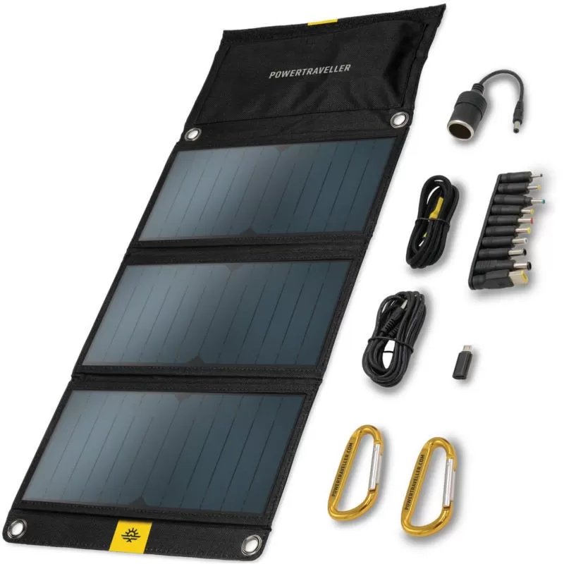 L’énergie solaire vous accompagne partout. C’est simple : le panneau solaire Falcon 21 de la marque Powertraveller peut alimenter et recharger quasiment tous vos appareils électroniques portables. Cela va du Smartphone à la tablette et de l’appareil photo Reflex à l’ordinateur portable en passant par le GPS ou la caméra GoPro. En fait, le panneau solaire Powertraveller Falcon 21 est compatible avec tous les appareils d’une puissance inférieure ou égale à 40 W et d’une tension inférieure ou égale à 20 V, d’où une extrême polyvalence. Autres grands avantages : c’est un panneau solaire pliable. Il a donc un format particulièrement adapté au monde de la randonnée, au monde du trekking et au monde du voyage. En outre, il bénéficie d’une grande surface de cellules monocristallines (SunPower) de dernière génération et à haut rendement, d’où ses hautes performances : 35% de puissance de plus en comparaison avec les cellules classiques. Sa solidité et sa résistance à l’eau (norme d’étanchéité : IPX4) en font un panneau solaire portable apte à de nombreuses activités Outdoor.