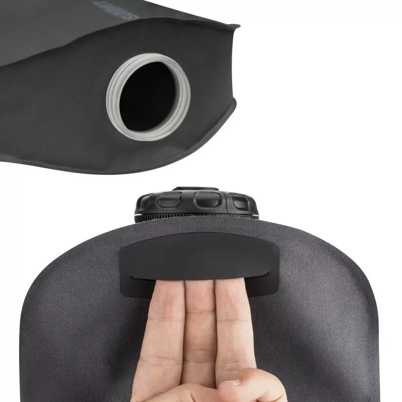 Quand on parle du réservoir à eau Sea to Summit Watercell X, on peut parler de polyvalence. Et pour cause, ce n’est pas un simple réservoir : le Watercell peut notamment remplir le rôle d’une douche solaire. En effet, il possède les attaches suffisantes pour le suspendre en hauteur (à un arbre par exemple) et son bouchon est un bouchon multifonction : ouverture large, fermeture étanche et mode douche avec débit ajustable. Pour résumer, on a à la fois une douche portable, un réservoir d’eau pouvant remplacer un jerrican ou une poche à eau déportée de grande capacité : 10 litres. De plus, son revêtement intérieur est certifié alimentaire, sans BPA et sans PVC : respect total de votre santé.
