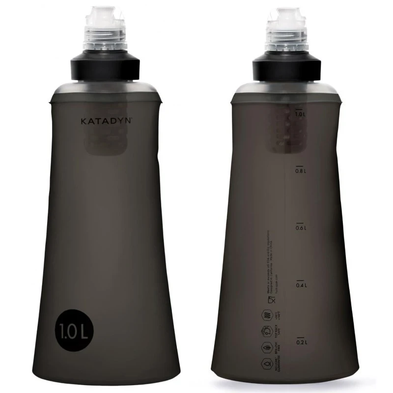 La gourde à filtre Katadyn Befree Tactical pèse 63 g, mesure 27 cm de haut et 8 cm de large. Elle offre une capacité maximale d’un litre. Elle est dotée de la technologie EZ-Clean et de graduations pour connaître à tout moment la réserve d’eau restante. Son filtre ne nécessite quasiment pas d’entretien : il suffit simplement de le rincer après chaque période d’utilisation. Le débit de filtration de la gourde filtrante Katadyn Befree Tactical est de 2 litres par minute (c’est un bon résultat). L’autonomie du filtre est de 1000 litres : autonomie longue. Enfin, toutes les gourdes Befree Katadyn sont certifiées sans BPA.